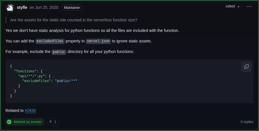 Errors are also opaque. The showstopper for getting my Python backend deployed successfully on Vercel was an unintuitive error message: data too long